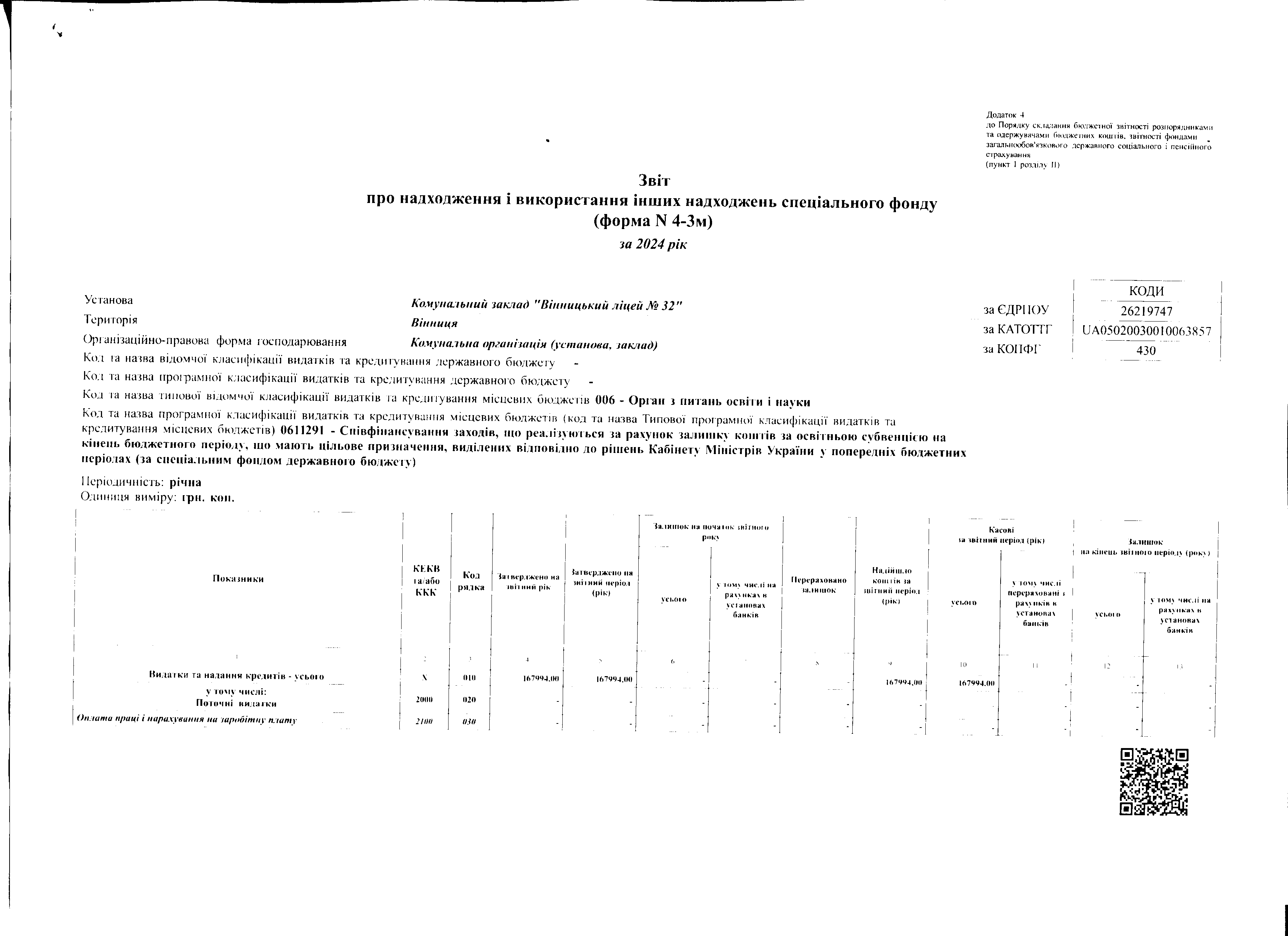 - Звіт про використані позабюджетні кошти