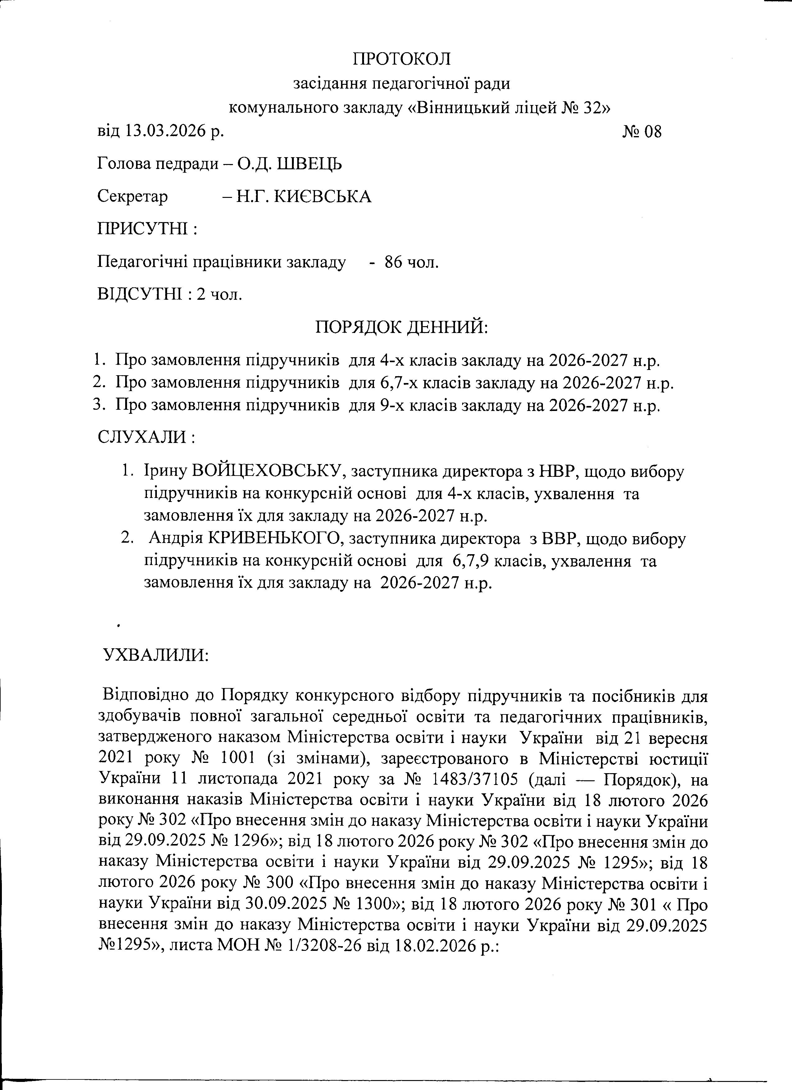 - Список учнів зарахованих до першого класу на 2025-2026 н.р.